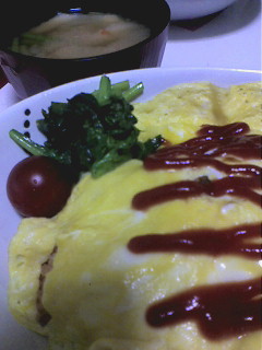 晩飯はありあわせの材料で、オムライスと味噌汁でした。
